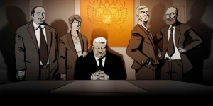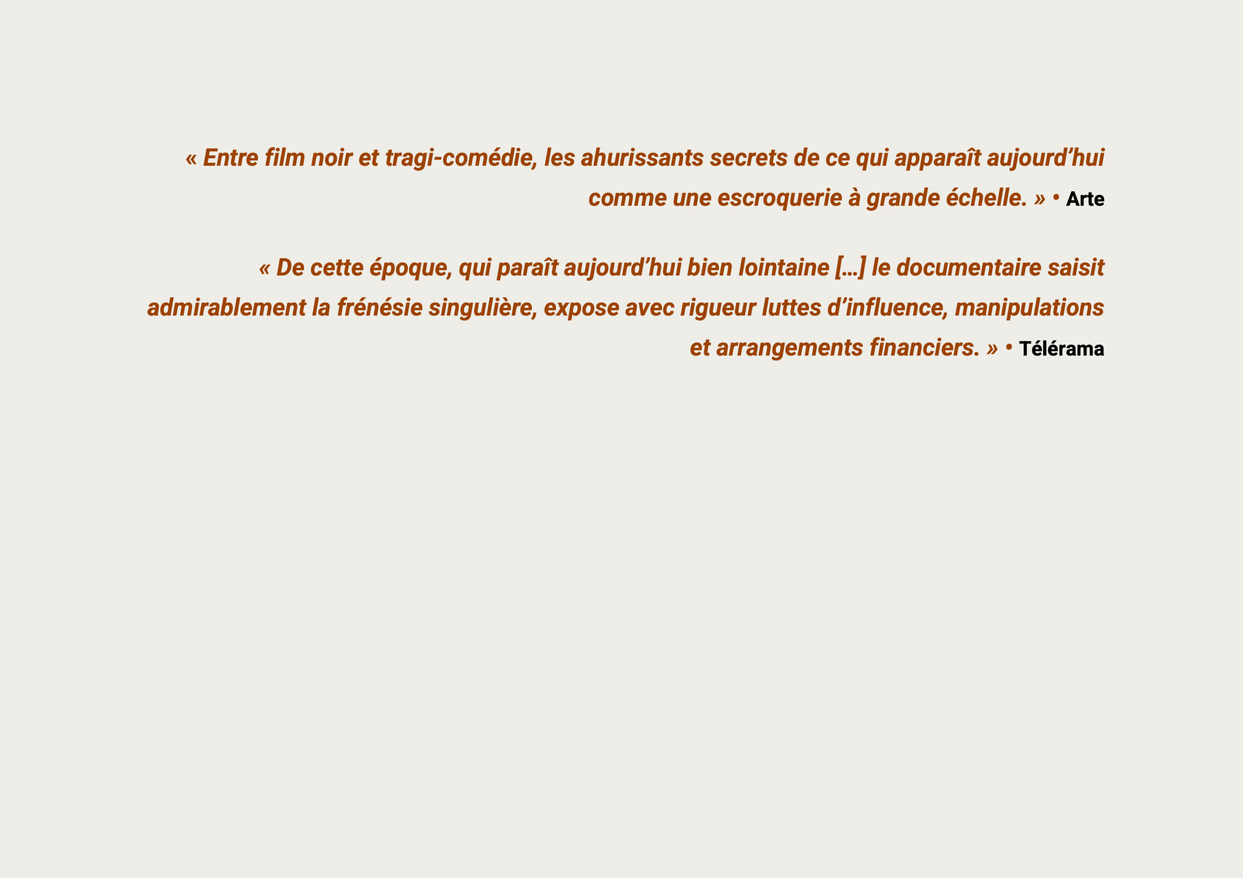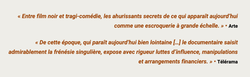 Pour l’emporter, Eltsine s’est engagé dans une campagne impitoyable au budget abyssal, dans laquelle le Kremlin, les médias, les hommes d’affaires russes et les puissances occidentales ont uni leurs forces pour que la Russie « ne retourne pas en URSS ». De pactes incongrus en escroqueries à grande échelle, ici avouées sans ambages, ce film de Madeleine Leroyer scille entre film noir et tragi-comédie shakespearienne. Archives rares, animations et témoignages, notamment de Tatiana Diatchenko, fille et conseillère d’Eltsine, de l’ancien vice-Premier ministre Anatoli Tchoubaïs de l’oligarque déchu Sergueï Pougatchev ou encore de l’ancien président du FMI, Michel Camdessus, nous entraînent dans les coulisses ahurissantes d’un moment crucial qui a scellé le destin de la Russie et, par ricochet, celui du monde.