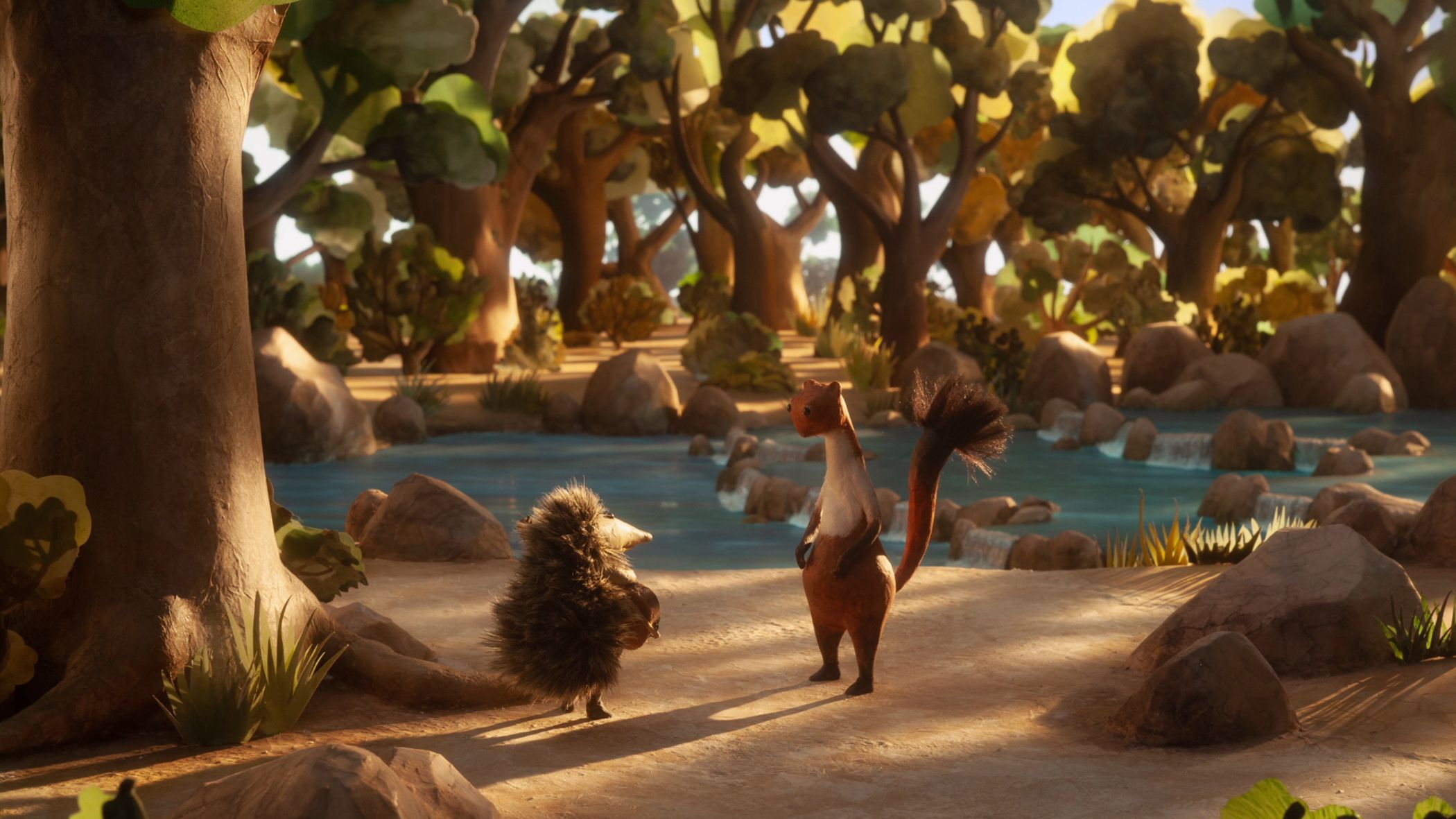 synopsis : Une fouine, dont le métier absurde consiste à faire du porte-à-porte pour vendre des cravates, sillonne les routes de campagne. Considérée commenuisible, en perpétuelle errance, elle décide de tenter sa chance dans la forêt. Son destin va alors changer grâce à l’aide inconditionnelle d’un hérisson. L’arrivée d’un troisième personnage, un capybara (petit rongeur herbivore) déraciné, obligé de fuir son pays pour des raisons que l’on devine climatiques, va amener la fouine à être à son tour dans une démarche d’entraide et finalement, à trouver sa place définitive.