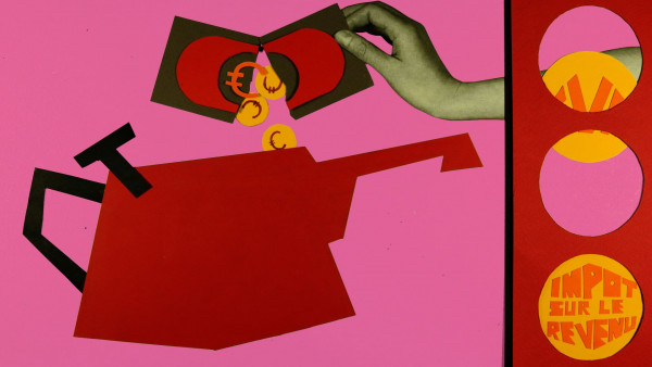 Lassée par les reproches dont on l’accable, la burette des impôts revient sur sa raison d’être : l’argent prélevé qui l’anime ne disparait pas dans ses poches, il est comme un salaire différé permettant de bénéficier de la protection sociale et de faire fonctionner des services publics. Contre ces pratiques et pour une société meilleure, la burette appelle à croire en le consentement à l’impôt.