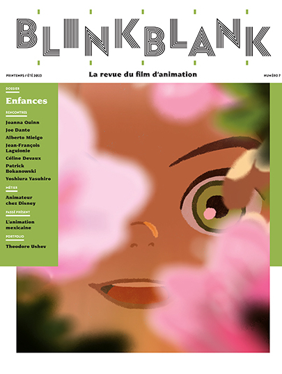 BLINK BLANK c’est deux fois par an, une revue 160 pages abondamment illustrées et dédiée à l’art de l’animation, c’est deux occasion par an de découvrir l’animation mondiale dans toute sa diversité et créativité, c’est une revue de référence, écrite par des spécialistes et par les artistes eux-mêmes. Dans chaque numéro : dossier, portrait, films & séries, Passé Présent, Work in Progress, La Fabrique de l’animation et Voix off, faisant la part belle aux entretiens, aux articles de fond, aux critiques et aux illustrations.