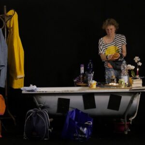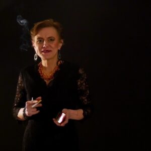 Apparente banalité, Gerda (ou Frieda, ou Janett ?) fait la cuisine : Elle s’apprête à partager un repas avec quelqu’un… ils s’engueulent. Chronique d’un moment difficile à situer dans le temps. Chronique d’une Berlin de film, chronique d’un ordinaire de film. Jusqu’à la fin de l’engueulade… et à cette aparté, où elle se livre, comme un livre – c’est un drôle de visage, une drôle de voix dans la nuit, des clopes qui s’enchaînent. — |