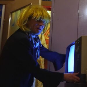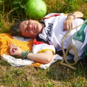 Frieda TV est un projet en soi… finalement la base même du film, parce qu’avant toute chose Frieda voulait faire un film, une création visuelle, une « récréation » pourrait-on dire. Frieda TV, c’est un peu le deal avec la réalisatrice : on va faire un « truc ensemble » ! Fantaisie, débordement, décalage, drôle de poésie, ironie joyeuse… j’ai déjà employé le mot « gourmandise »… cette fameuse gourmandise est en roue libre, en dérapage contrôlé toujours, et avec exigence : se succèdent des décors, des saynètes, des figures, des manifestes. Quelqu’un m’avait dit un jour qu’elle se voyait un peu comme « nonne et jouisseuse à la fois ». Il y a un peu de ça dans chacune des séquences de Frieda TV. Elle est là pour rigoler, mais pas que… – |