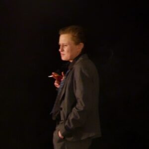 Dans ce même début, outre le(s) personnage(s), il y a l’Allemagne, la langue, la couleur. Nous sommes à Berlin, nous le sentons très tôt. Dans ce cabaret bizarre impressionniste, nous ressentons la ville mythique, dans une vision presque figée, d’un autre temps rêvé… dans son jus… éternel. Notre héroïne est une icône, authentique, flambeuse et flambée. Elle ira plus tard taper dans le dos de dieu, autant qu’elle à la confession. Dans ces jeux de rôle successifs, elle nous parle d’elle comme jamais. — |