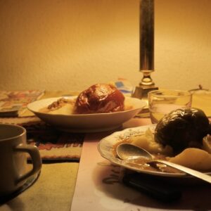 Kartoffelpuffer, Knödeln, Kohlrouladen, Senfeier