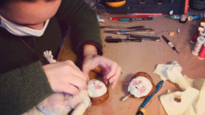 Avec le Motion Lab, on est en attente de financements. On est sur un modèle encore neuf, on construit progressivement mais il faut que le lieu vive pour convaincre les collectivités. Ce qu’on voudrait mettre en place ça concerne la traçabilité des matériaux. On voudrait aller chercher les financements pour avoir une expertise, une ingénierie des matériaux : voir quel impact ça aura si on utilise par exemple de la mousse de latex ou du silicone. Quel est l’impact d’un rouleau de fil d’aluminium recuit, où est-il fondu ? Pour les colles on sait déjà, pour le reste on a des sons de cloche différents. C’est vrai qu’en stop mo on utilise des petites quantités mais ça vaudrait la peine de creuser plus. Qui sait, si ça se trouve ce serait moins polluant d’utiliser du synthétique plutôt que de la glaise ?
