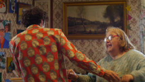 Samuel, par cette voix off, ces couleurs, ce verbage assumé, ces gros plans de Francine souriante et apaisée, élève son personnage, ou plutôt met en scène ce qu’elle a réussi à faire elle-même : transformer sa colère, ses angoisses par la peinture qui apaise son âme, et accéder à “sa vie totale”, faite de peinture, de légumes dans le jardin… L’art, comme puissance transformatrice.