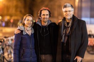 ENTRETIEN AVEC JOSE MIGUEL RIBEIRO LE FILM NAYOLA, LA GUERRE EN ANGOLA, VUE PAR LES FEMMES photographie © Gilles Pensart : l’équipe de Nayola (de gauche à droite : Camille Raulo, José-Miguel Robeiro et Jean-François Bigot) au sortir de la projection à Rennes à l’occasion du festival TRAVELLING |