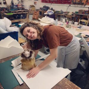 Cléo Truphème : technienne Stop Motion – décors A 26 ans, Cléo Truphème travaille dans le stop motion en tant que technicienne décor depuis 2023. Cette envie de stop motion était là dès le début de son parcours d’études en DMA cinéma d’animation à Cournon-d’Auvergne… Elle a ainsi poursuivi en optant pour des cursus complémentaires tel qu’un DMA matériaux de synthèse et Décors à Paris puis une dernière année aux Beaux-Arts de Lorient en animation volume, explorant davantage l’aspect écriture et récit. C’est là qu’elle a découvert l’écosystème breton du cinéma d’animation Breton et les studios Rennais, et pu rejoindre, notamment, l’équipe de fabrication de Sauvages ! de Claude Barras au Studio Personne n’est parfait ! Dans une vision d’avenir, elle souhaite continuer de parfaire son savoir-faire technique, mais aussi explorer des méthodes de fabrication plus éco-responsables et saines… Elle souhaite également amorcer l’écriture de deux projets de courts métrages. — |