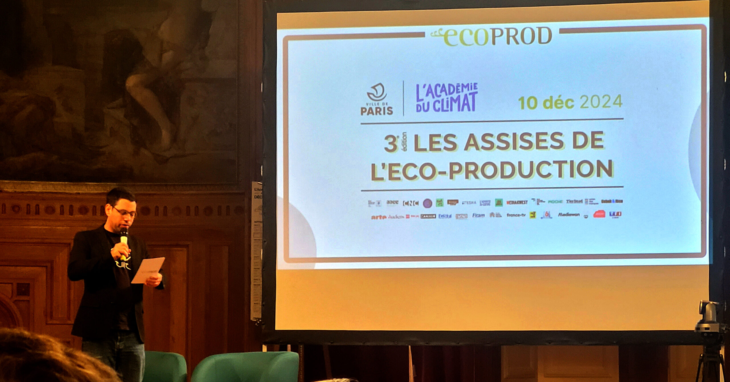 Mardi 10 décembre 2024, ce sont donc deux éco-référentes bretonnes, adhérentes de l’association, Déborah Gillet et Mado Le Fur, qui ont participé aux 3èmes Assises organisées par Ecoprod à l’Académie du Climat. Avec 450 participant·e·s de tous horizons, cette édition affichait complet et témoigne de l’engagement croissant de l’industrie audiovisuelle vers des pratiques plus responsables…et si le mouvement s’accélérait ?