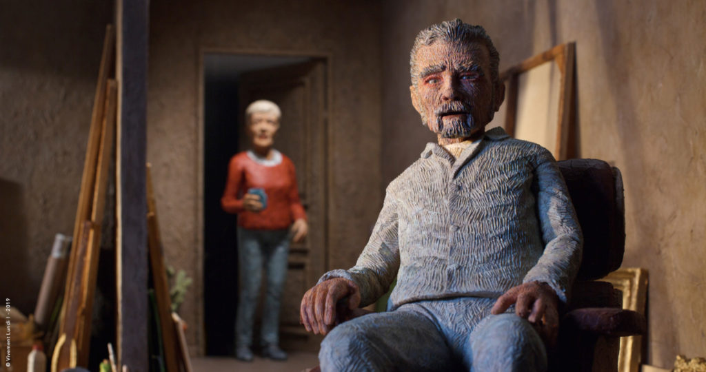 À la mer poussière d’Héloïse FERLAY produit par l’ENSAD (école supérieure des arts décoratifs) tourné dans le studio breton Personne n’est parfait ! et distribué par Vivement Lundi !