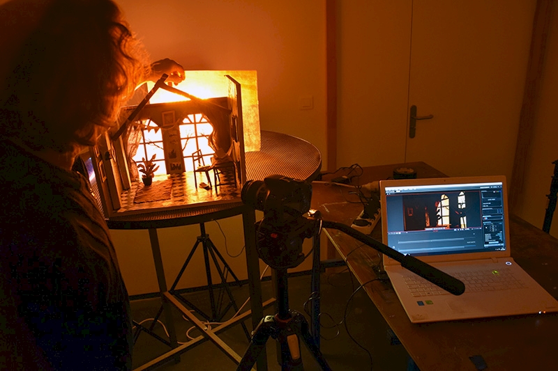 Guy et Nathalie : Le DNA-Art mention Animation-Volume s’est monté à l’EESAB-Lorient en 2021 car il y avait depuis longtemps un véritable engouement des étudiants pour cette forme de récit filmique. En effet, depuis 2005, nous faisions venir chaque année à l’école pendant une ou deux semaines pour des workshops spécifiques des intervenants en film d’animation (auteurs et réalisateurs, techniciens, story-boarders, scénaristes …). Cet engagement continuel a laissé des traces, et en 2019 la formation continue Start Motion s’est logiquement déroulée à l’école d’Art de Lorient. Ensuite, les moyens étant réunis (plateaux de tournage, outils, et budget), nous avons décidé d’organiser une première année d’études menant à un DNA mention Animation-Volume pour 5 étudiants de l’option Art. Nous en sommes à la quatrième promotion qui comprend 8 inscrits, et ce cursus maintenant bien établi se déroule bien.